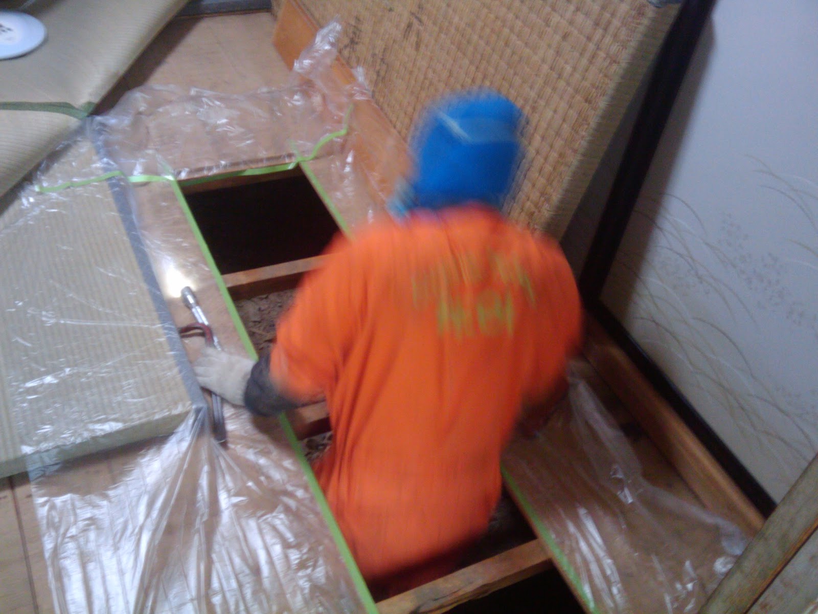 狭い床下を進むのはとても大変そうです。